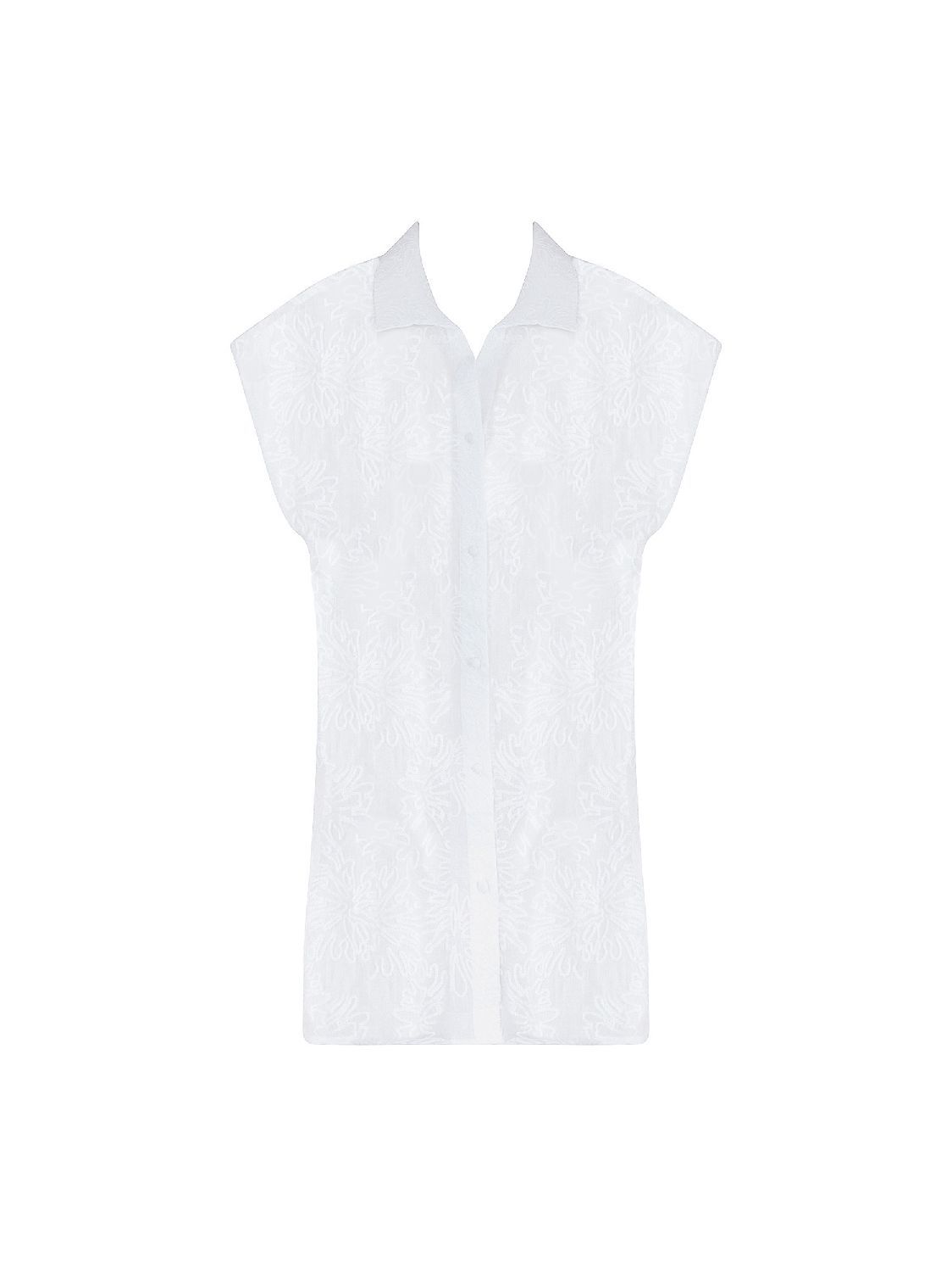 Hemd met kraagje en knoop boordje. Lengte knieHalf lang hemd zonder mouwen in geborduurde stof.100% Coton
