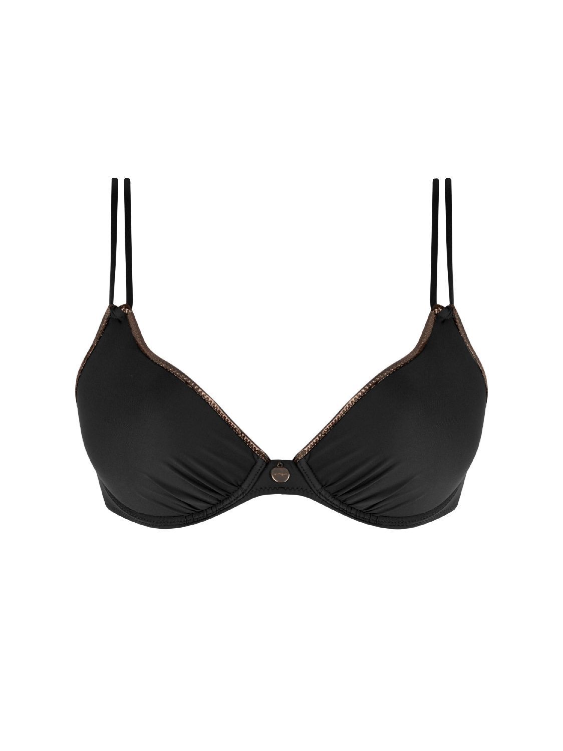 Bikini top coque met beugels. Diep decolleté. Afgeronde buste. Coques drogen snel. Bandjes multipositioneerbaar.47% Polyamide, 28% Polyurethane, 15% Polyester, 10% Elasthanne