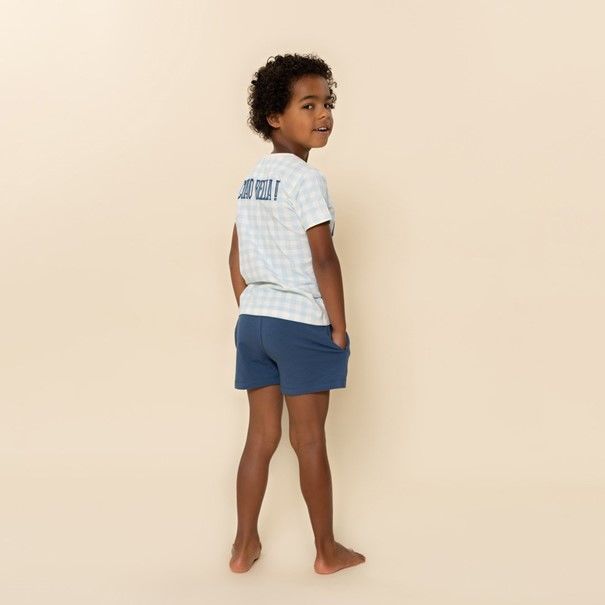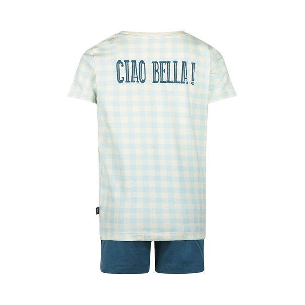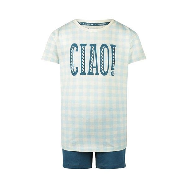 Zeg 'Ciao!' tegen de zomeravonden in deze vrolijke Charlie Choe short set voor jongens. Het pyjama setje, gemaakt van 95% katoen met 5% elastaan, biedt ultiem comfort voor de warme nachten. De top met een lichte ruitjesprint en de tekst 'Ciao!' past perfect bij de effen blauwe short. Ideaal voor het creëren van die zorgeloze momenten tijdens het chillen, slapen of het kijken van een spannende film.- 95% Cotton/ 5% Elastane