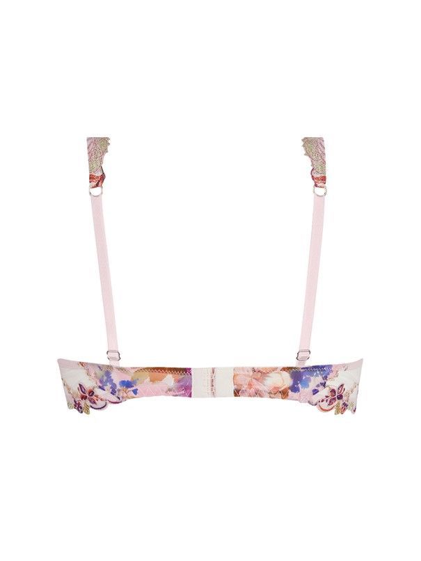 Glamour BHBovenkant cup in multikleurige broderie geïncrusteerd op bedrukking. Onderkant cup in bedrukte tule.
