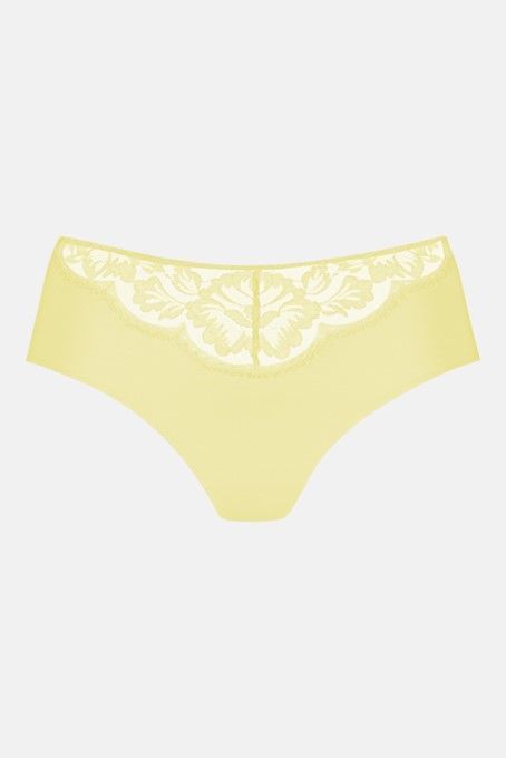 De American-Pants in de kleur Sunny Honey uit de serie Amazing combineert aangenaam draagcomfort met een vrouwelijke uitstraling voor elke dag. De strakke snit wordt stijlvol aangevuld met een delicate kanten versiering aan de voorkant en geeft de slip een verleidelijke touch, zonder dat dit ten koste gaat van de geschiktheid voor dagelijks gebruik. De serie Amazing maakt indruk met een spannende combinatie van ondoorzichtige elementen en transparante stoffen, die elegant worden benadrukt door bloemige kanten versieringen.- Machinewasbaar op 30° C, fijne was, niet geschikt voor de droger