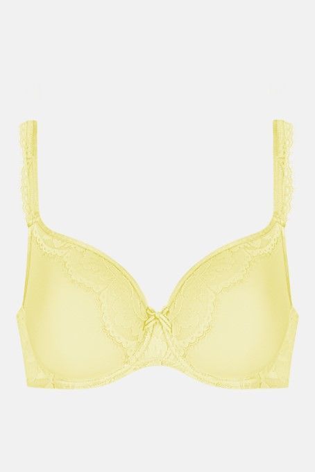 De vederlichte spacer-bh in de zomerse kleur Sunny Honey uit de serie Amazing combineert betrouwbare ondersteuning met aangenaam draagcomfort. De ademende spacer-cups passen zich zachtjes aan de borst aan en zorgen voor een natuurlijk, rond silhouet – ook ideaal voor grotere cupmaten. Delicaat bloemenkant benadrukt de vrouwelijke uitstraling en geeft de beha een elegante look. De serie Amazing maakt indruk door de harmonieuze combinatie van ondoorzichtige materialen en transparante kanten elementen. - Handwas, niet geschikt voor de droger