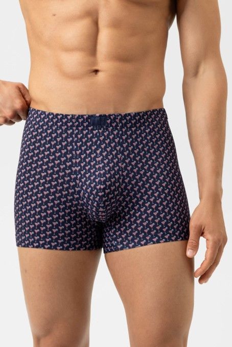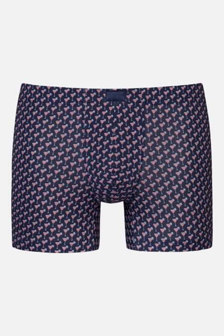 De Trunk Shorty uit de Midnight Drink-serie in de kleur marine combineert een trendy design met eersteklas comfort. Het zachte modal-elastaanmateriaal sluit zachtjes aan op de huid en biedt optimale bewegingsvrijheid. De nauwsluitende pasvorm zorgt voor een goede pasvorm, terwijl het fijne cocktailpatroon de shorty een bijzonder, modieus karakter geeft. Door een bijzonder hoog modaalgehalte (95%) heeft deze Trunk Shorty een glad oppervlak met een zijdezachte glans.- 95% Modaal, 5% Elastaan- Machinewasbaar op 40° C, fijne was, geschikt voor de droger