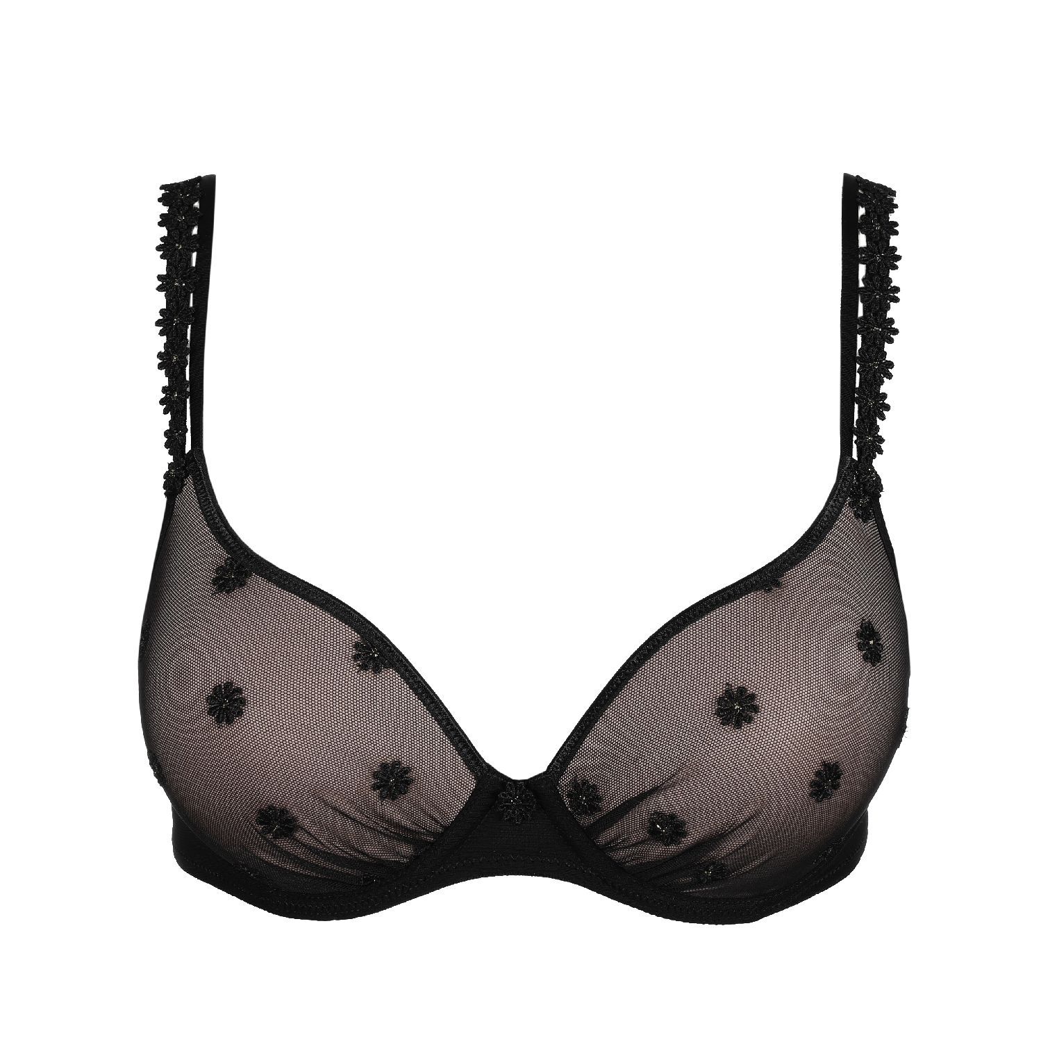 Sexy styles met onze signature bloemenguipure.- Comfy voorgevormde bh met beugel- Stijlvol, niet-transparant design- Schouderbandjes om te laten zien- Iconische look in zwart