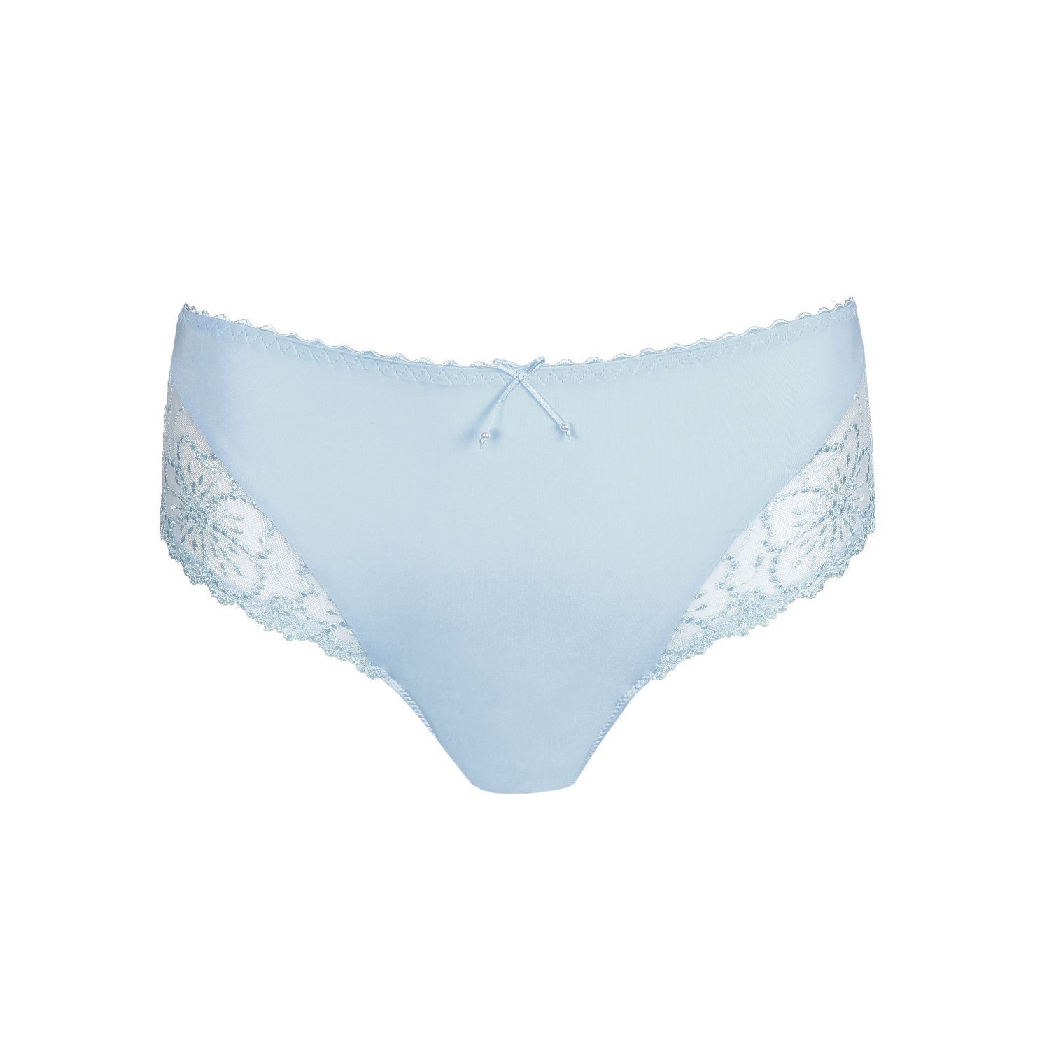 Flatterende favoriet met subtiel tweekleurige broderie.- Hoge tailleslip voor een cool retrosilhouet.- Fris en zomers in pastelblauw