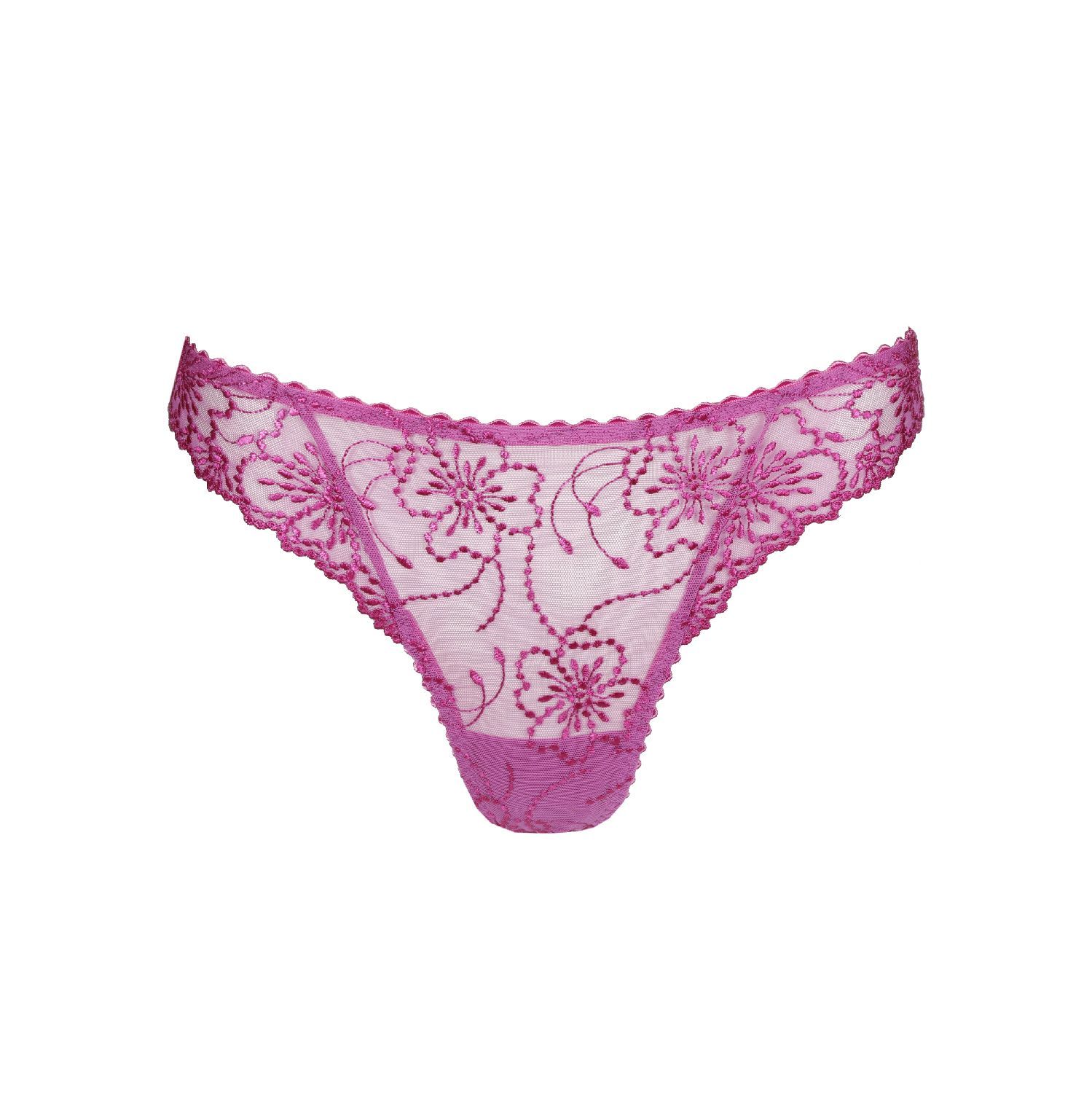 Flatterende favoriet met subtiel tweekleurige broderie.- Sexy string voor een gladde look onder elke outfit.- In een warmroze orchideeënkleur
