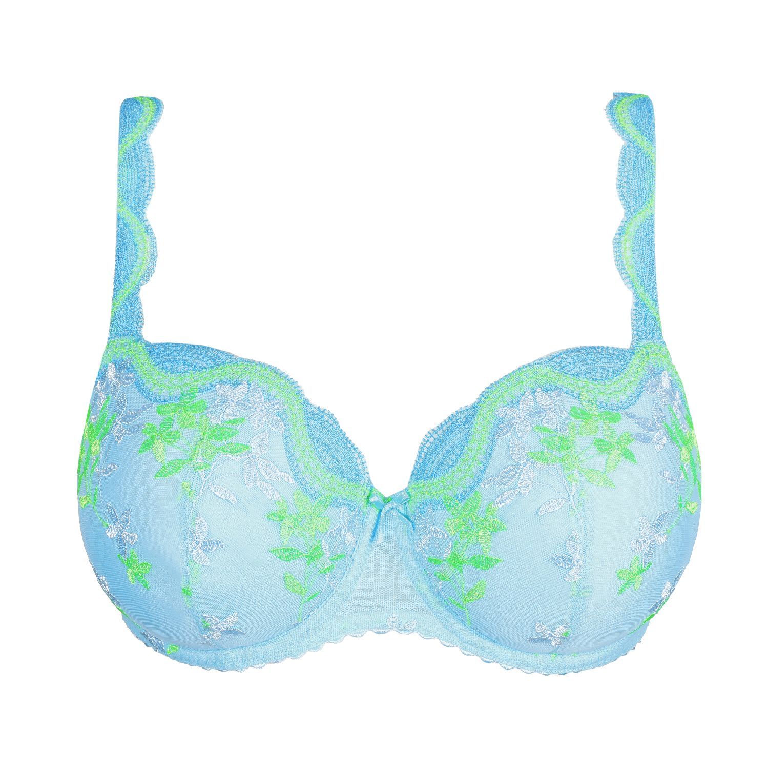 Coole en kleurrijke lingerie, gemaakt voor eindeloze zomerdagen.- Comfy voorgevormde beha met beugel- Stijlvol, niet-transparant design- Schouderbandjes om te laten zien- In fris en flatterend blauw- Niet bleken- Geen professionele reiniging- Niet trommeldrogen- 30°C beperkt programma- Niet strijkenPolyamide:35%, Polyester:53%, Elastaan:12%