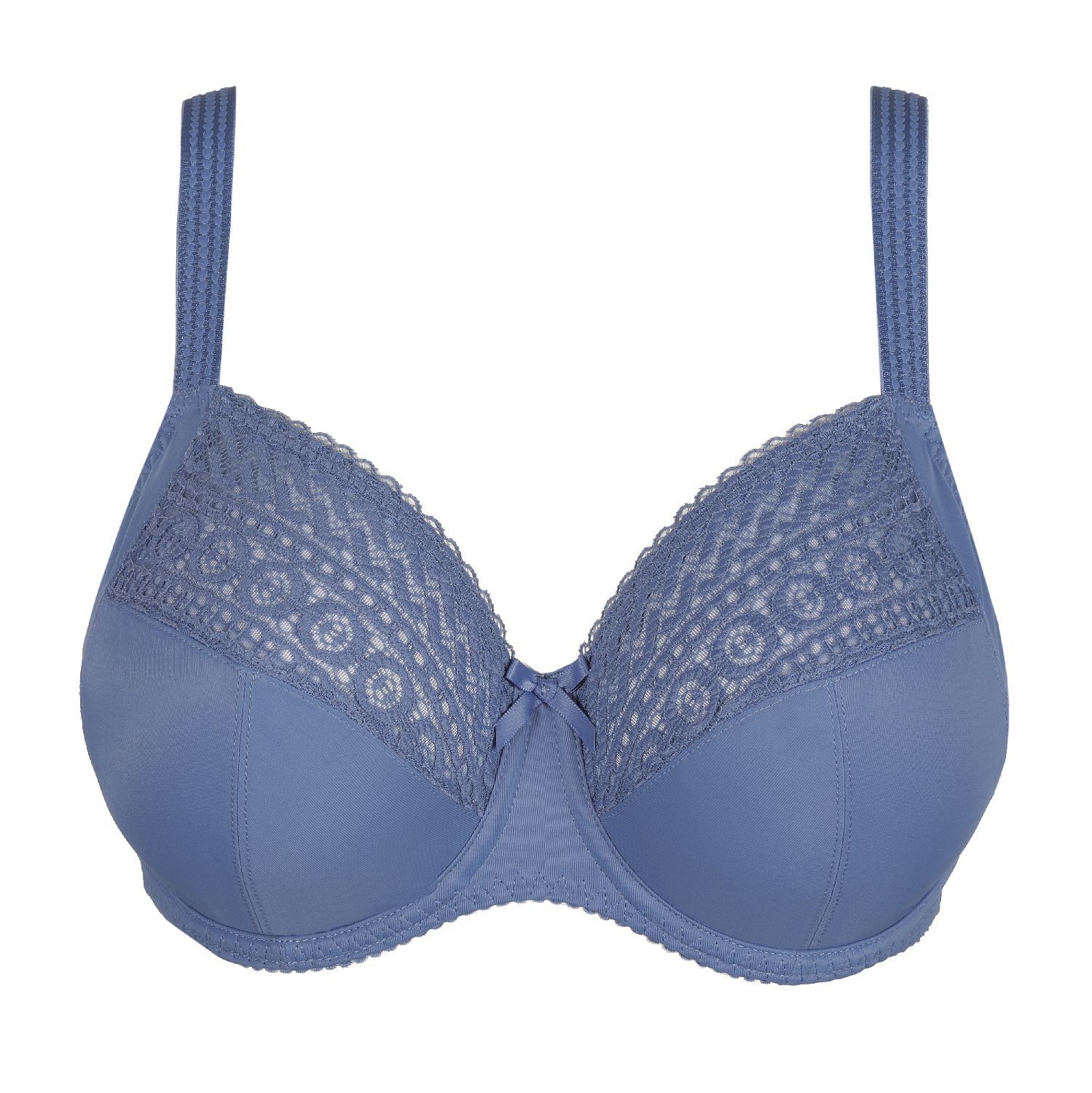 Luchtige, comfortabele retrolooks met kant.- Comfy niet voorgevormde beha met beugel- Stijlvol, niet-transparant design- Schouderbandjes om te laten zien- In een fashionable denimkleur