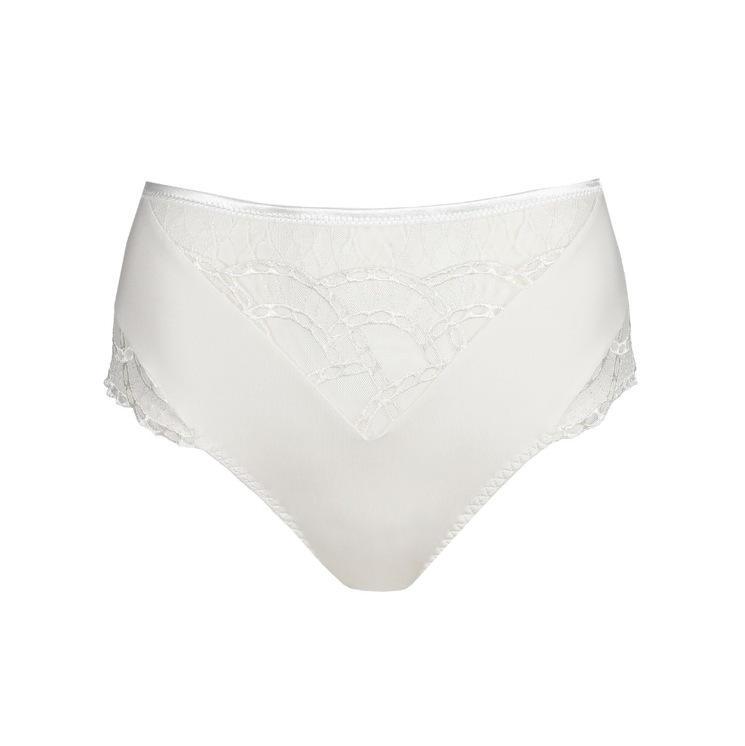 Fijne kant meets grafische broderie. Zo comfy, oh zo sexy.- Hoge tailleslip voor een cool retrosilhouet.- Sensueel en zacht in natuur