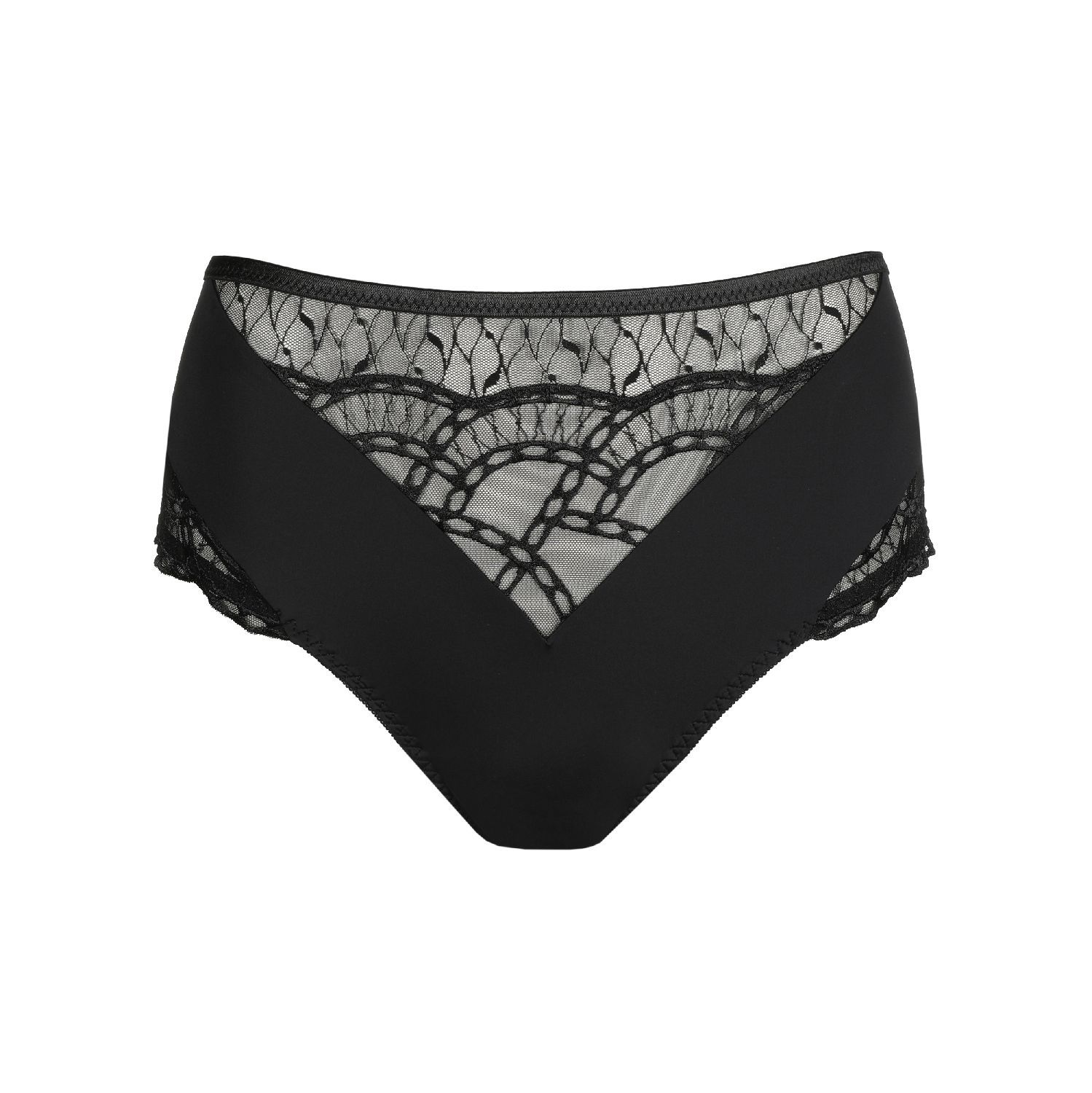 Fijne kant meets grafische broderie. Zo comfy, oh zo sexy.- Hoge tailleslip voor een cool retrosilhouet.- Sexy en stylish in zwart