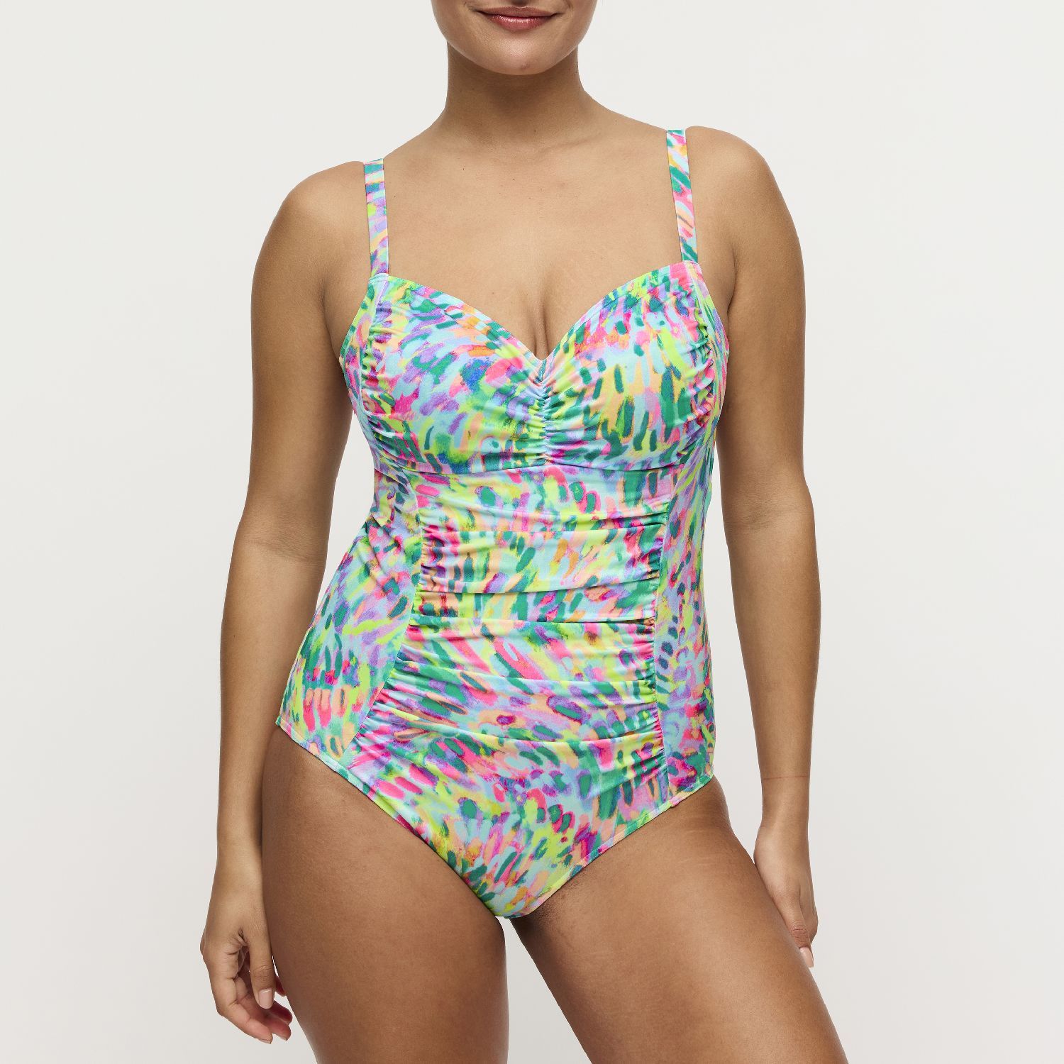 Swimwear die zalig zit - summer vibes only.- Figuurcorrigerend badpak met volle cups voor extra veel steun.- Funky kleurenmix - 100% on trend
