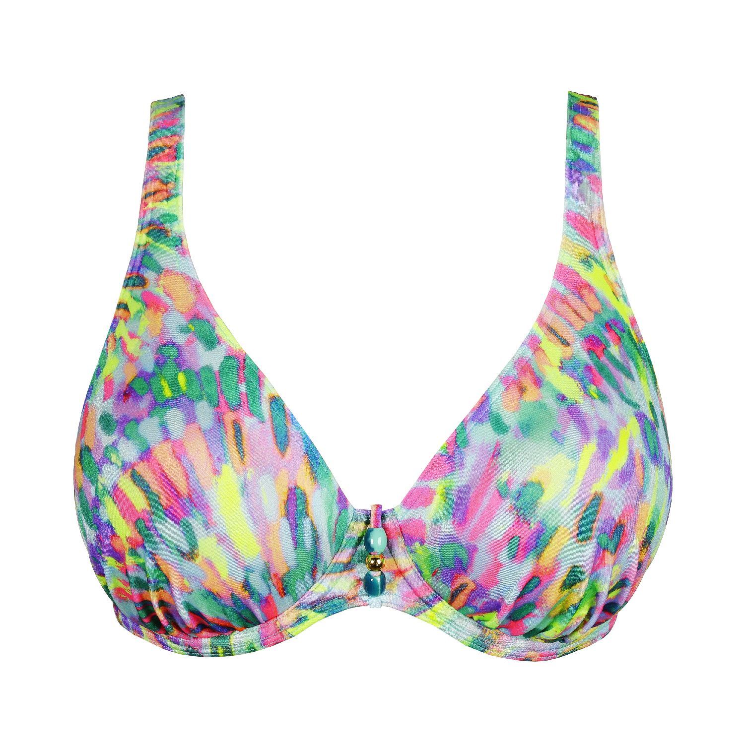 Swimwear die zalig zit - summer vibes only.- Sensuele plunge top met luchtige halve mousse cups.- Funky kleurenmix - 100% on trend