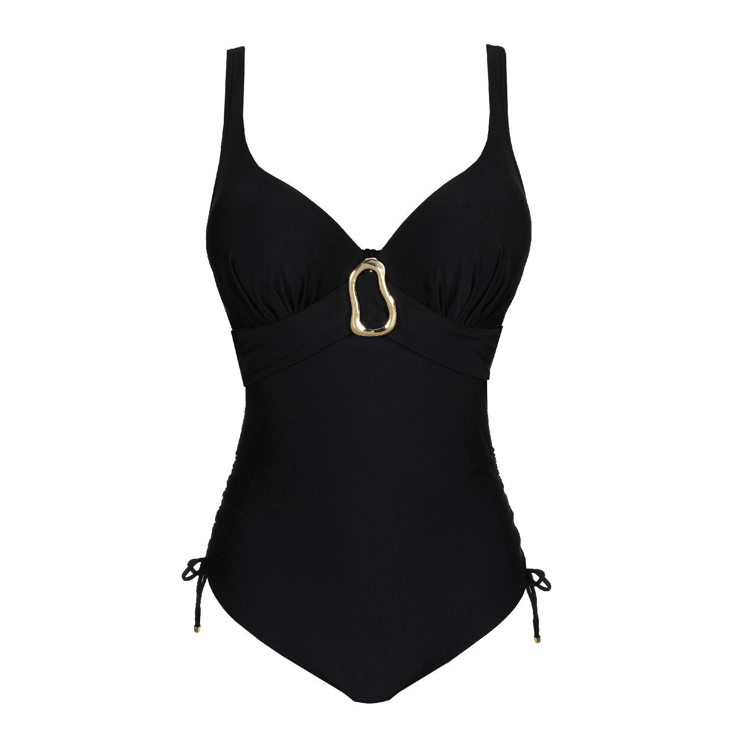 Statement swimwear met een luxueuze vibe.- Sexy badpak met plunge cups voor een prachtig decolleté.- Pure luxe in tijdloos zwart- 72% Gerecycleerde garen- Niet bleken- Geen professionele reiniging- Niet trommeldrogen- 30°C beperkt programma- Niet strijkenElastaan:23%, Polyester:27%, Polyamide:50%