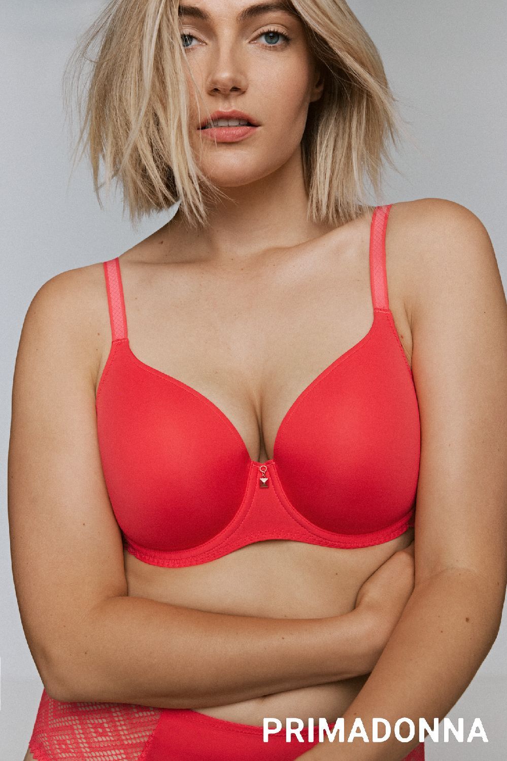 Minimalistisch met kant - en een zalige pasvorm.- Comfy voorgevormde beha met beugel- Stijlvol, niet-transparant design- Schouderbandjes om te laten zien- In een warme koraalrode tint